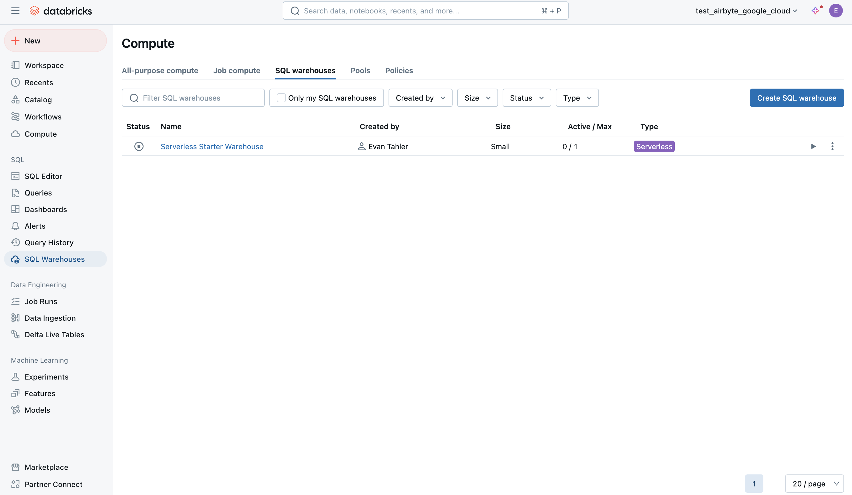 • Purge Staging Files and Tables - Whether Airbyte should delete files after loading them into tables. Note: if deselected, Databricks will still delete your files after your retention period has passed (default - 7 days).